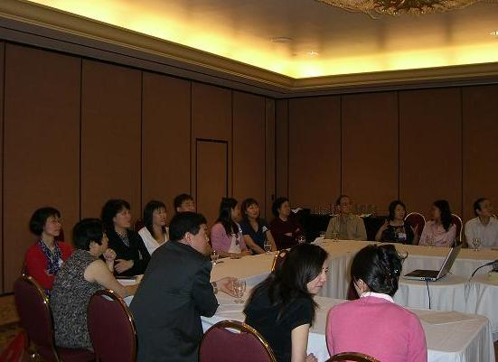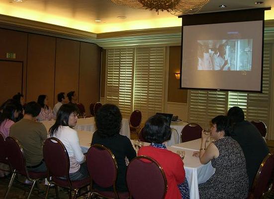 图片3 洛杉矶的校友们观看由医学部李鹰副主任介绍的北医概况的幻灯片