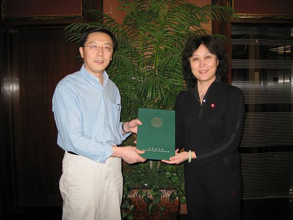 校友会常务副会长李鹰教授代表校友会将365bet现金开户常务理事的证书交给纽约校友会会长王融
