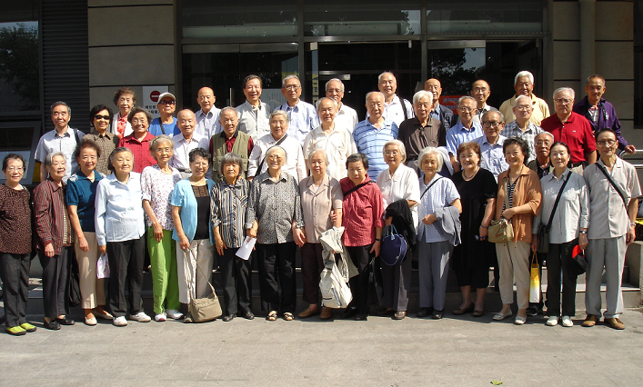 08年9月22日,这一天,在这些年逾八旬的老人脸上写满了与同窗团聚的幸福,一阵阵孩童般的笑声,一丝感慨,一丝感动,母校中撷取当年青涩的回忆。