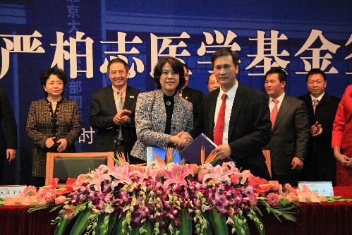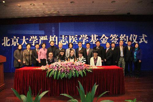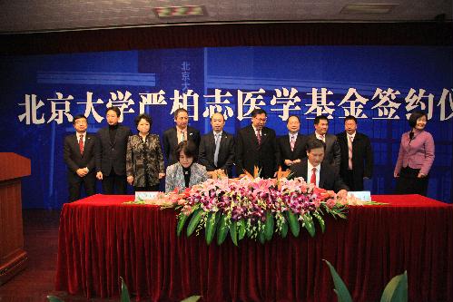 2月18日下午,北京大学严柏志医学基金捐赠协议签约仪式在逸夫楼二层报告厅举行。美国AA肉食品公司董事长兼总经理、美国洛杉矶中华总商会名誉主席严柏志先生捐资人民币800万元,在医学部设立“北京大学严柏志医学基金”,用于北京大学医学部国际交流中心的建设。