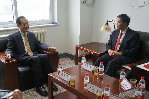 签约仪式前,全国政协副主席、医学部主任韩启德在办公室接见了严柏志先生、王存玉院士一行。